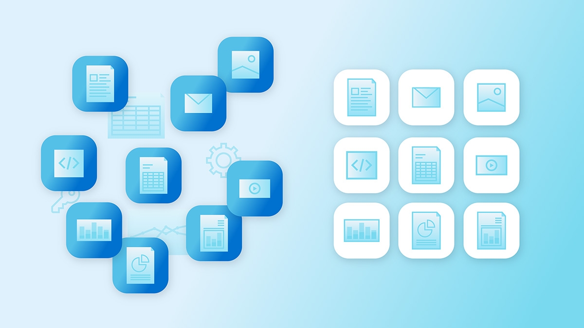 - 複数の宛先をまたいで分散して収集、保存された非構造化データ(例:チャット、メール、音声ログ)
