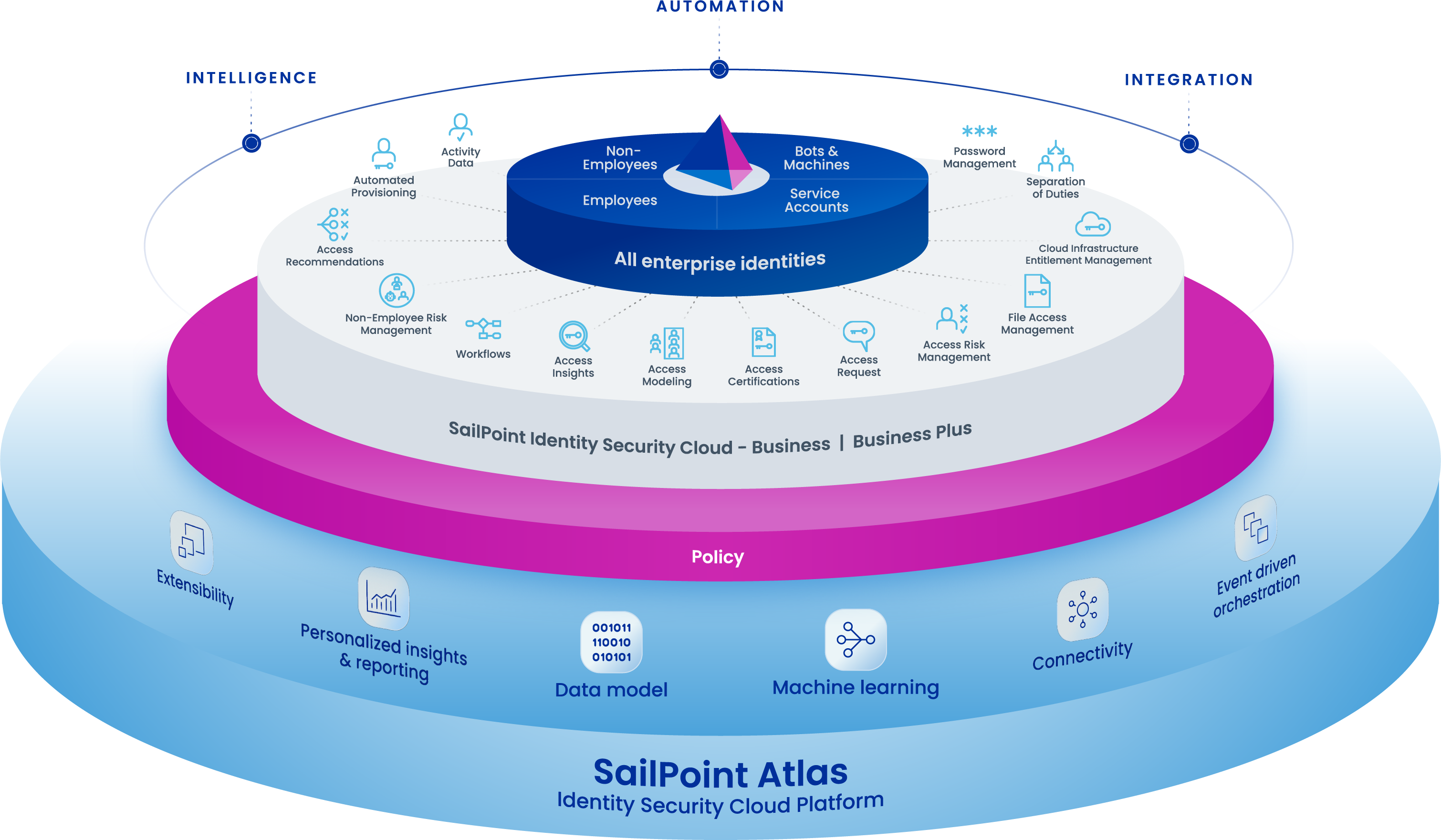 SailPoint Atlas is the platform for SailPoint Identity Security Cloud solutions (Business & Business Plus.) It includes the critical services enterprises must have to build a strong identity security program. Existing Business and Business Plus customers will benefit from the common services that make up Atlas.