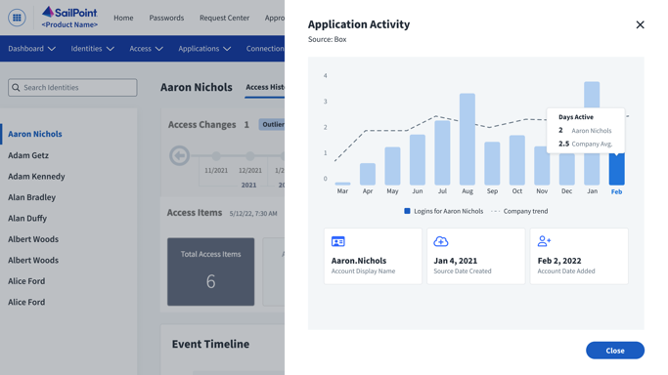 Last year, SailPoint introduced new capabilities for detecting and managing potentially risky access, also known as Identity Outliers, and the Access Intelligence Center data visualization and reporting tool. This year, SailPoint added additional AI capabilities to help customers dynamically review, evaluate, and refine roles and maintain an optimized access model even as organizational changes occur. In addition, SailPoint added SaaS app usage patterns as another attribute to help organization understand user access better.