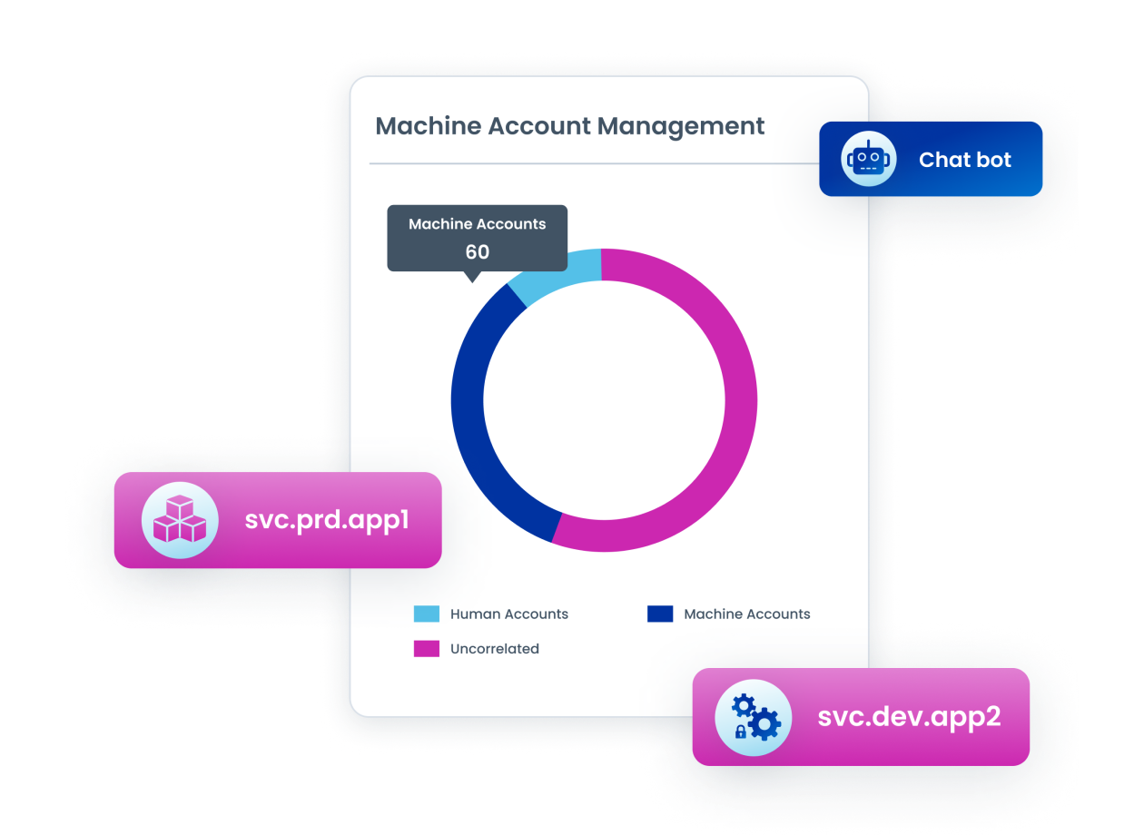 Machine Identity Security brings order to the chaos—helping you discover, govern, and secure service accounts, bots, RPAs, and other non-human accounts across your environment.
