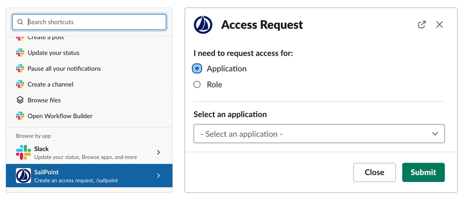 Access request in Slack: Workers can now click on the Slack shortcut button to quickly request access.