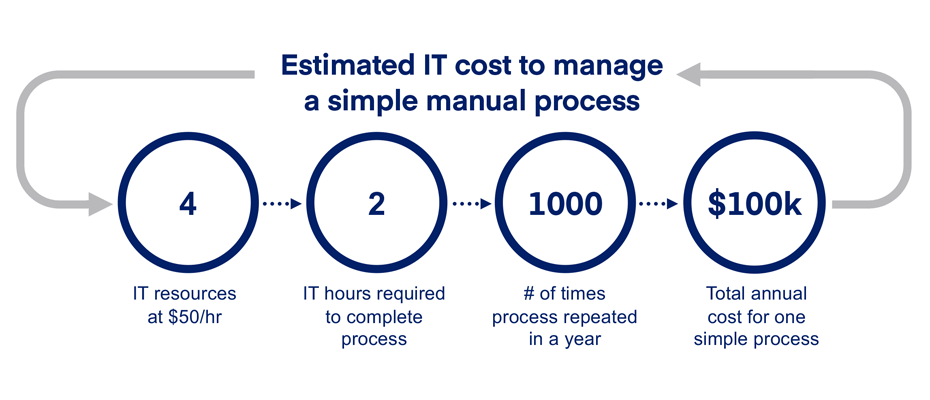 Regardless, many organizations continue with their legacy, manual or quasi-automated script-driven approach to managing user access. Let’s take a look at how the costs with your current approach can quickly add up even for a simple manual process.
