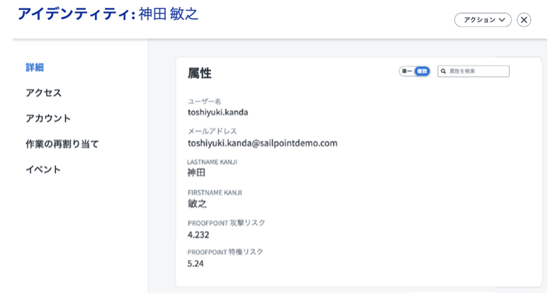 図1.プルーフポイントのリスク スコアをアイデンティティの属性として表示