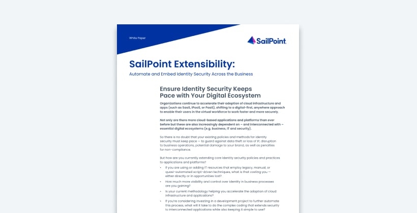 SailPoint SaaS Workflows can help you reduce integration development from months to a day or even hours. Our easy-to-use, drag-and-drop workflow UI simplifies automation and makes it possible for even non-technical users to customize workflows to fit business needs.
