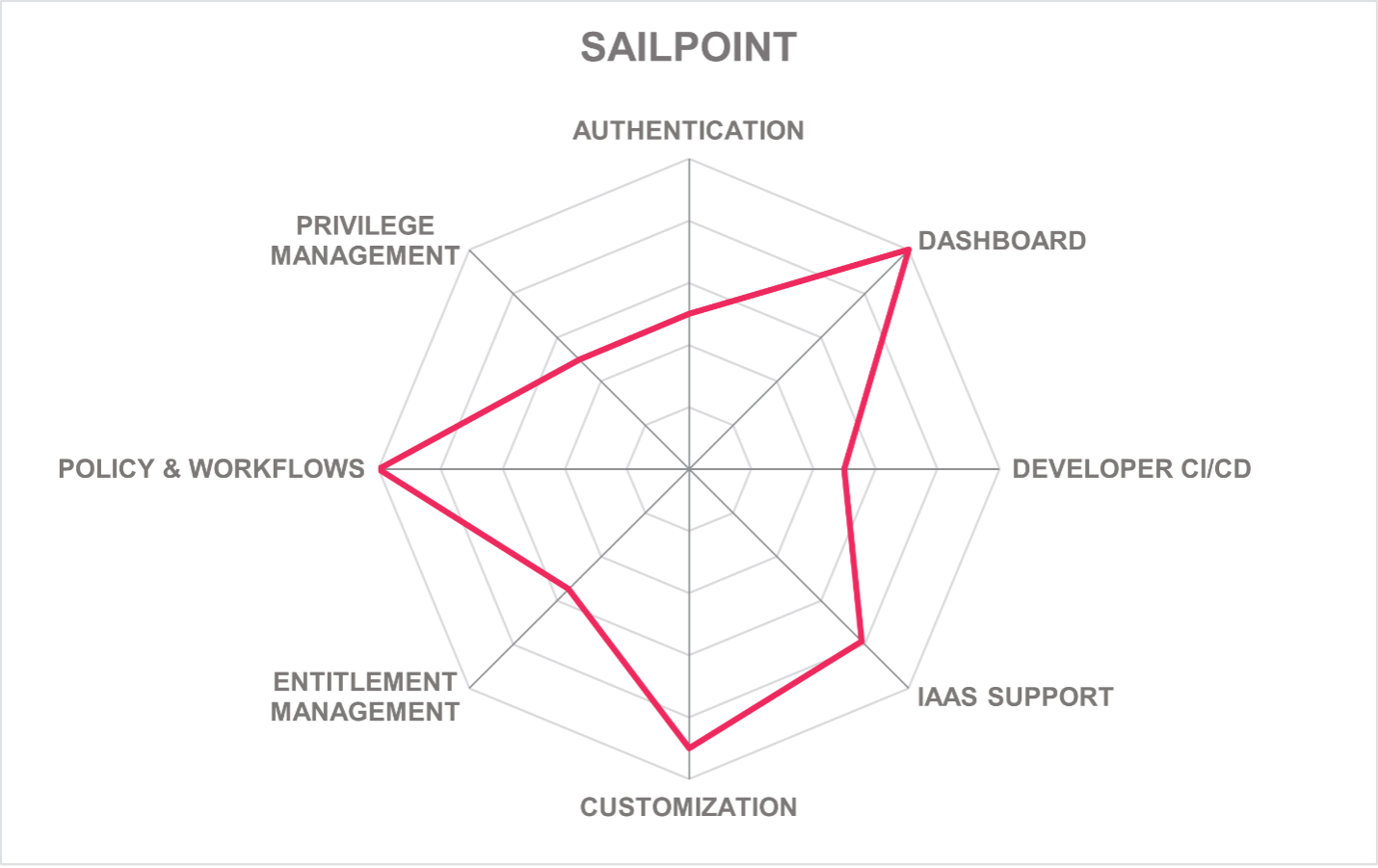 KuppingerCole’s evaluation further underscores SailPoint’s strengths in dashboard experience, policy and workflow management, platform customization, and IaaS support. These capabilities contribute to operational efficiency, policy enforcement, and usability at scale.