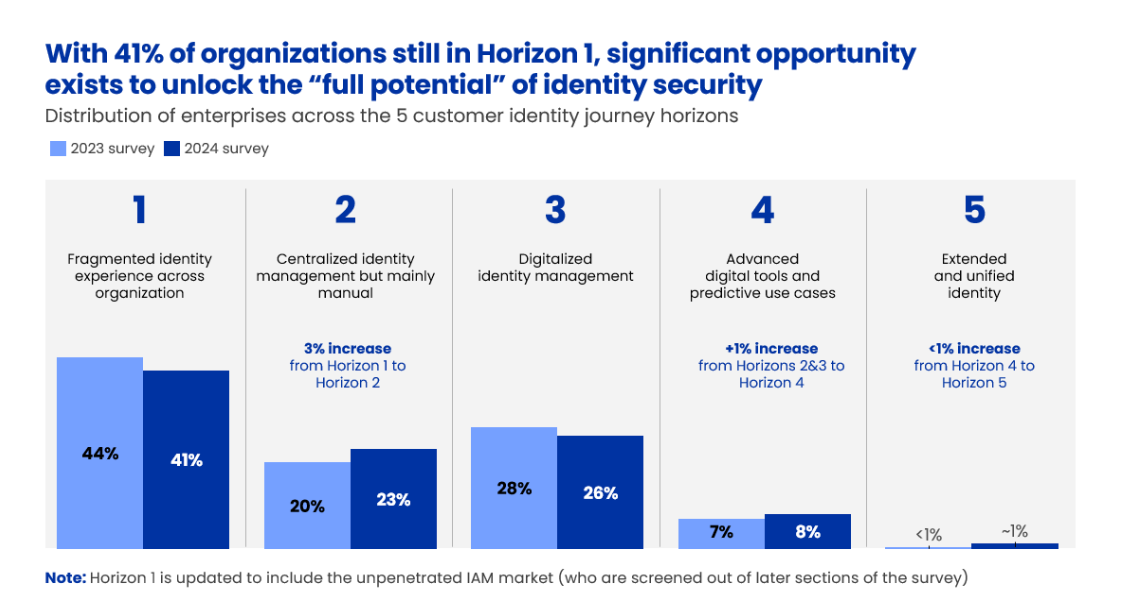The 2024 Horizons of Identity Security report outlines several areas where mature identity security programs have progressed and unlocked new value pools, such as: