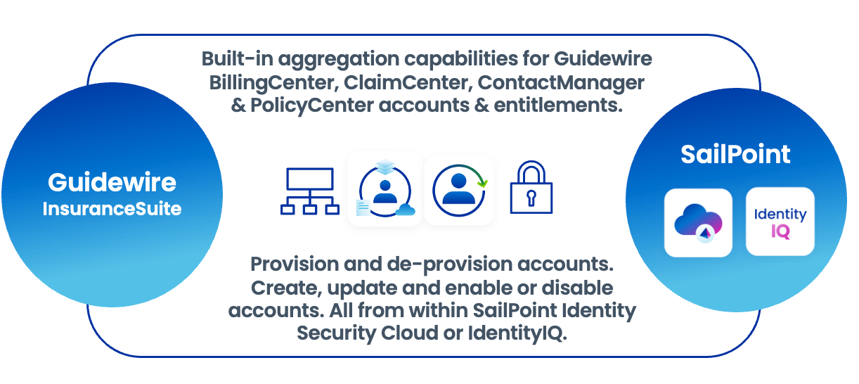 SailPoint’s Guidewire InsuranceSuite Accelerator integrations for SailPoint Identity Security Cloud and IdentityIQ ensure that insurance carriers and users have the visibility and control necessary to timely provision and manage the right access to the right identities at the right time—directly from SailPoint.