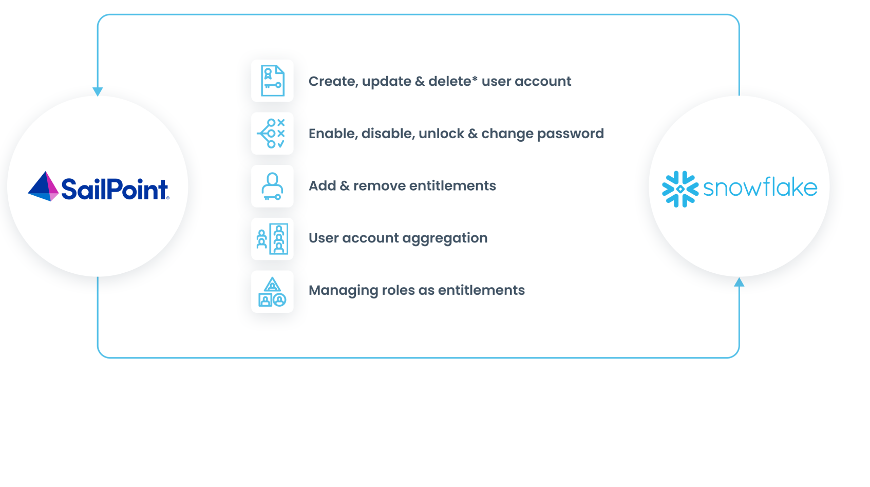 Get full visibility into user identity, access, and privileges for Snowflake data warehouses. SailPoint’s integration with Snowflake, a leader in data management and warehousing solutions for analytics, adds our core identity security capabilities so you can govern access to critical enterprise data within Snowflake.