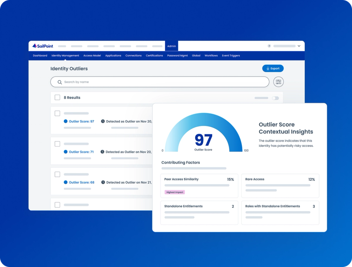 Detect access for identities that differs significantly from their peers by using individual risk scores and contextual insights that explain not just what is risky, but why. By analyzing access patterns, usage behavior, and peer group comparisons, risky outliers are quickly surfaced with clear context. Automated workflows then guide informed, real-time access decisions—prompting remediation, role adjustments, or approvals—to continuously optimize roles, reduce over-privilege, and maintain a strong security posture without slowing the business.