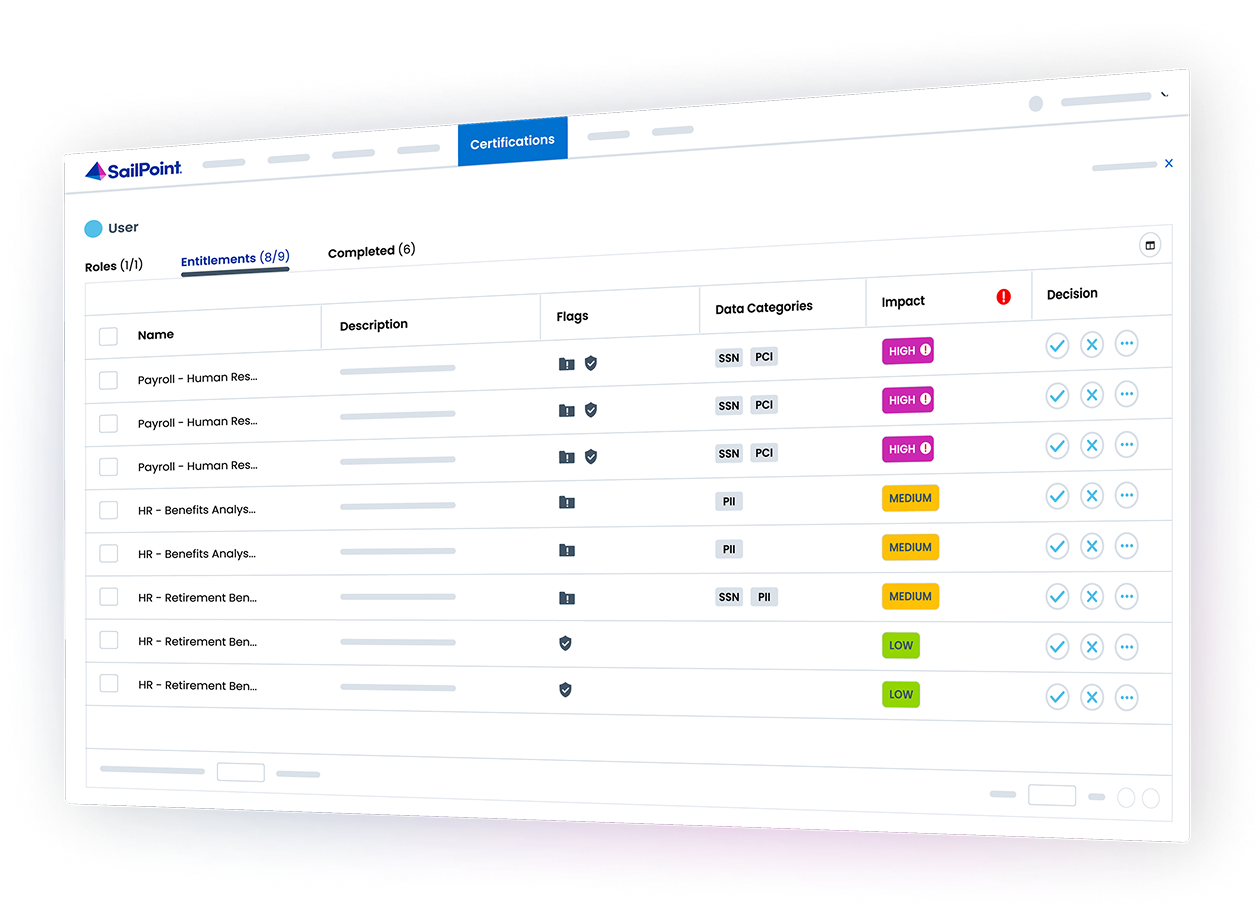 By providing visibility into data access, sensitivity, and usage, SailPoint helps organizations create a more efficient, transparent certification process that aligns with internal controls and regulatory expectations.