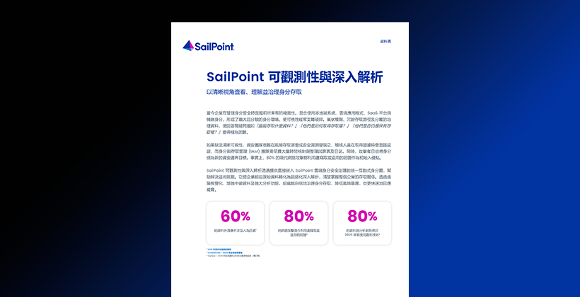 運用 SailPoint 資料存取安全保護企業敏感資料。此整合式解決方案將身分治理延伸至整個企業的資料保護。這一强大的擴充模組透過揭露隱藏的資料存取風險、執行最小權限原則,並讓資料控制與企業更廣泛的身分安全策略完美契合,將 SailPoint 雲端身分安全組合方案的治理能力延伸至資料。